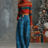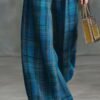 Be the first to review “Vintage Fashion Versatile Blue Plaid Wide-leg Pants”