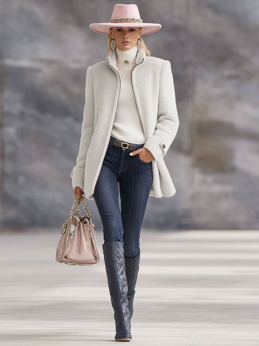 Casual Vintage Pink Polar Fleece Zip-Up Jacket Coat