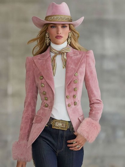 Lapel Multi-button Faux Suede And Fur Blazer