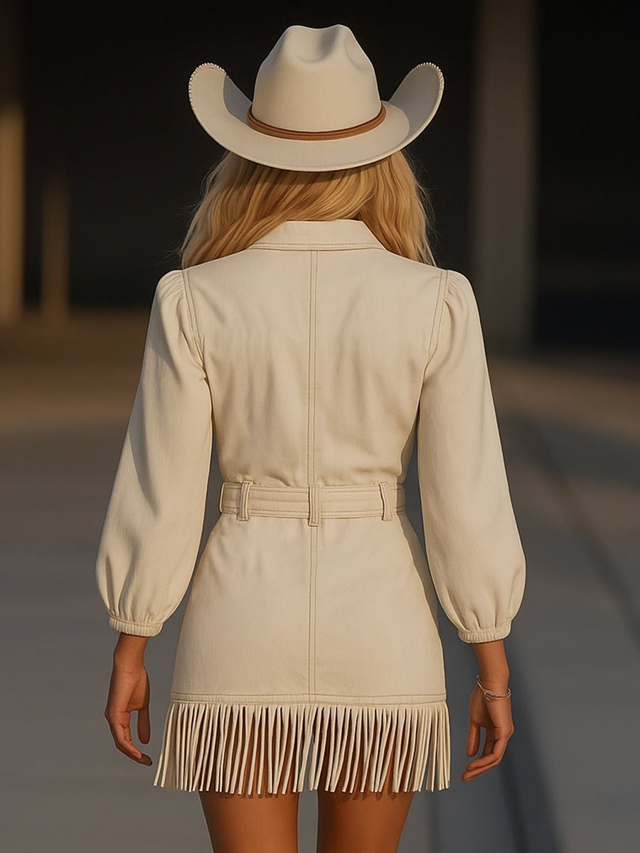 Retro High-end Fashion Tassel Splicing Denim Mini Dress
